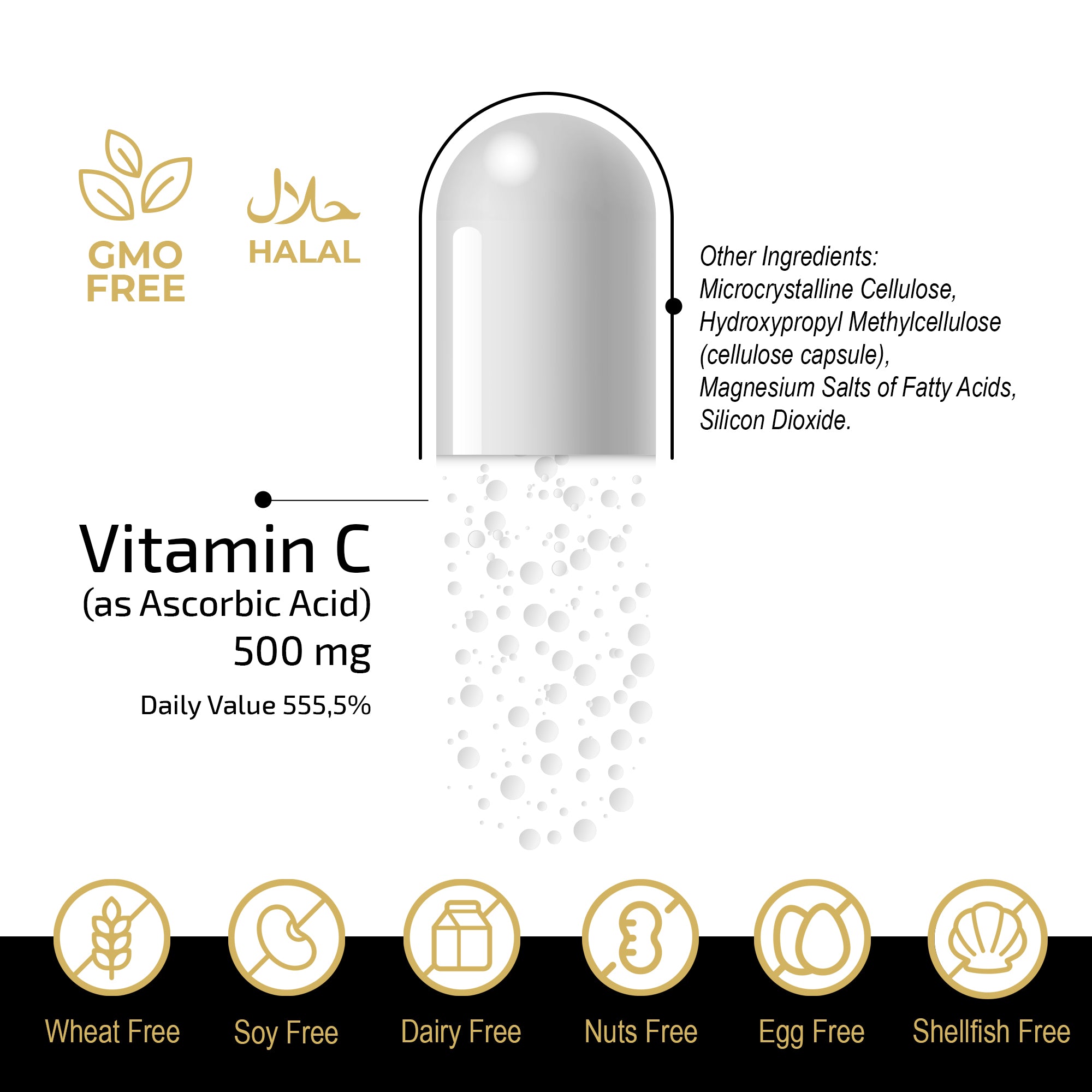 Vitamin C is well known for its crucial role in supporting the immune system and promoting the body’s natural defenses. It plays an important role in collagen formation, necessary for healthy skin, bones, and joints. Additionally, vitamin C functions as a powerful antioxidant, helping protect cells from oxidative stress.