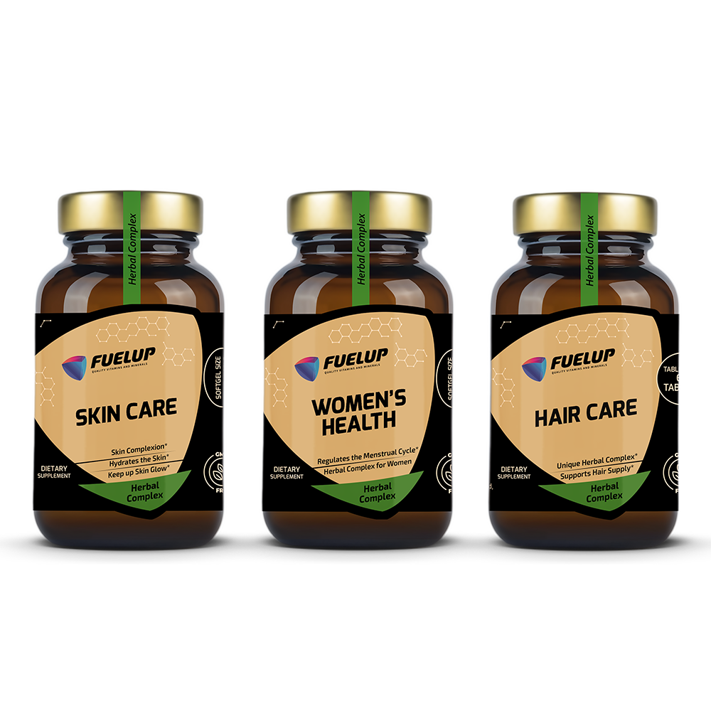 Fuel-Up For Her is a complete bundle of three supplements designed to support women’s health, beauty and overall wellbeing. It contains key ingredients that promote hormonal balance, radiant skin, strong hair and everyday energy. A perfect choice for women who want to care for themselves from the inside out.