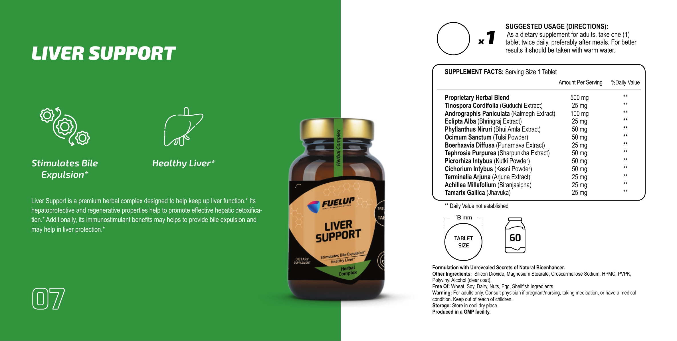 Liver Support is a premium herbal blend that promotes liver health and its natural detoxification process. Its regenerative and protective properties aid in effective cleansing and support the immune system.