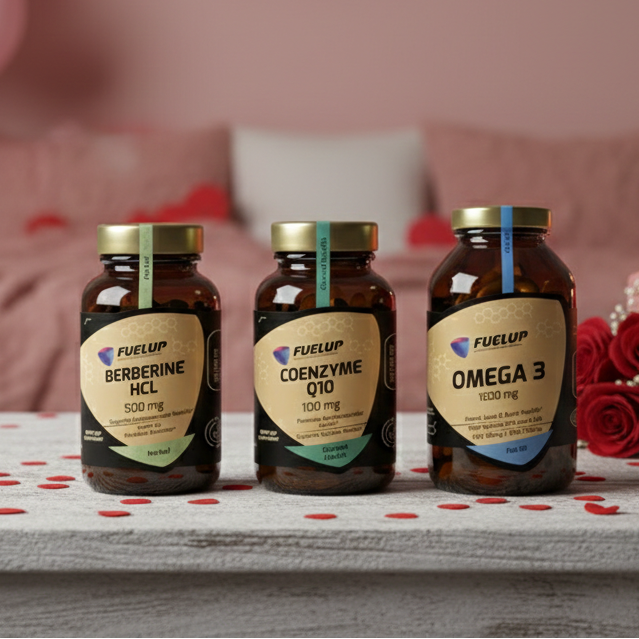 Fuel-Up Anti-Aging is a synergistic combination of three supplements: Omega-3, Coenzyme Q10 and Berberine. Together, they help protect cells from aging, support heart function, regulate blood sugar levels and boost daily energy. A smart choice for anyone looking to maintain long-term vitality.